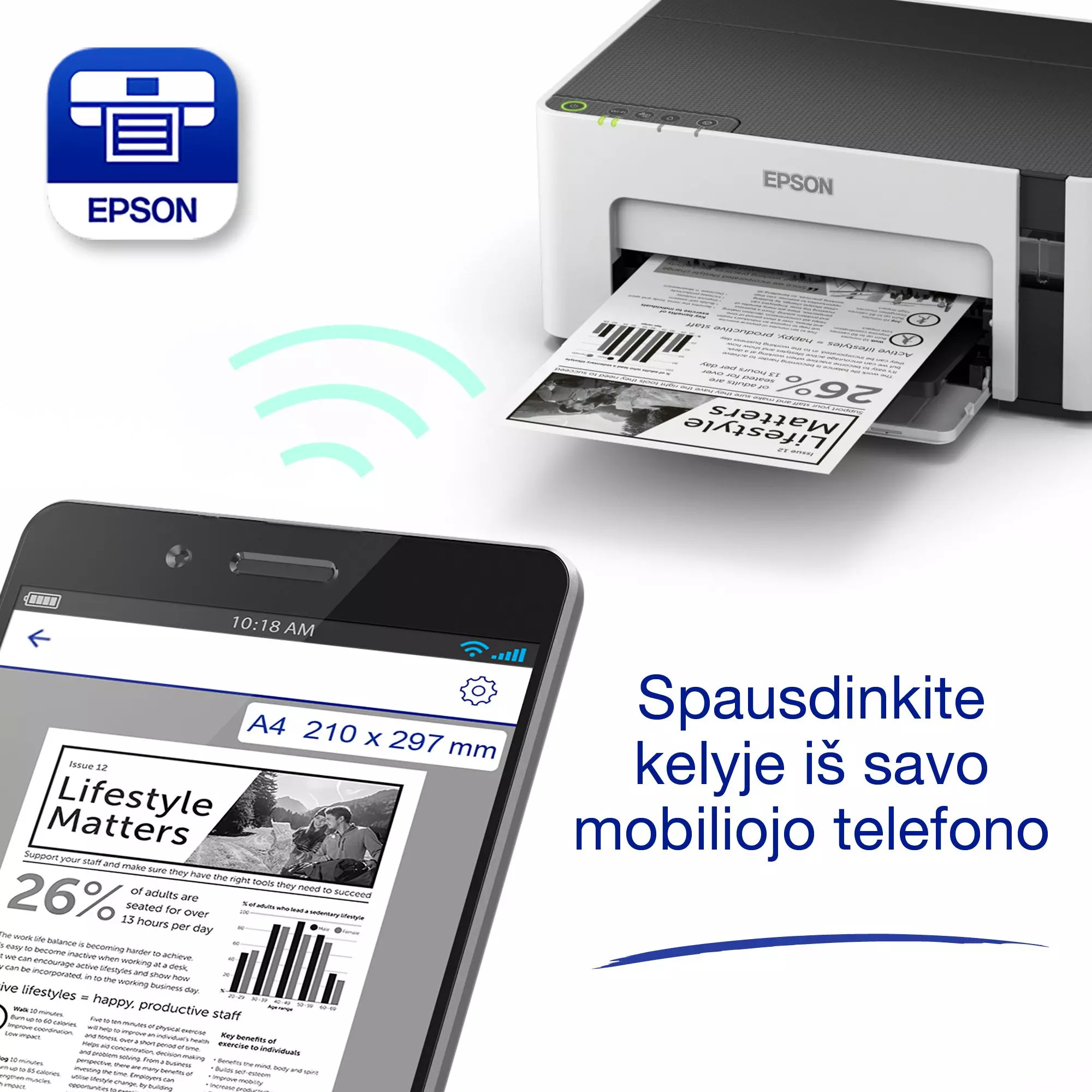 Epson EcoTank M1120 is an economical monochrome printer with an ink tank system, designed for efficient work in the office or at home. It features fast printing and an extremely low cost per page, making it ideal for larger volumes of documents. The printer supports Wi-Fi connectivity, allowing you to conveniently print from different devices. This is a practical solution for those looking for a balance between price, performance and convenience.